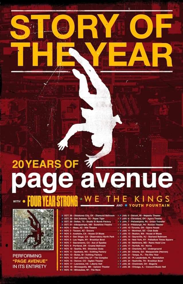 Alt-rockers Story of the Year are celebrating twenty years of their debut album, Page Avenue, with a fall 2023/winter 2024 tour, and they will be playing the record in its entirety! Special guests include fellow alternative/pop punk acts Four Year Strong, We The Kings, and Youth Fountain.