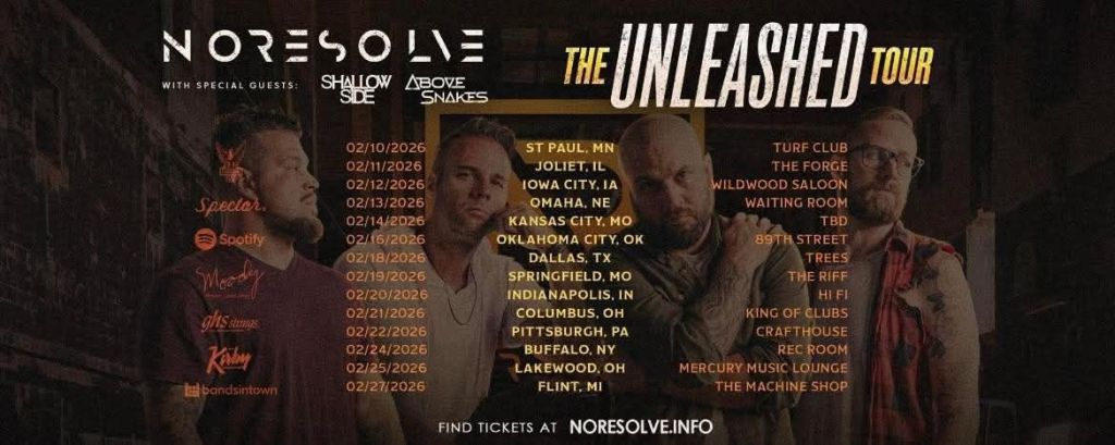 No Resolve has shared dates for The Unleashed Tour, featuring special guests Shallow Side and Above Snakes. This winter run will make its first stop in St. Paul, Minnesota, on February 10th. Tickets are available at noresolve.info!