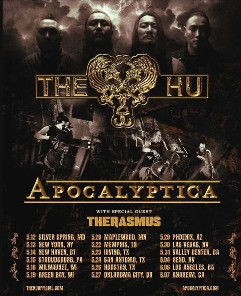 Mongolian folk metal band The Hu is teaming up with Finnish symphonic metal trio Apocalyptica for a North American tour this May/June. The brief run boasts Finnish rockers The Rasmus as support. Tickets are available at thehuofficial.com!
