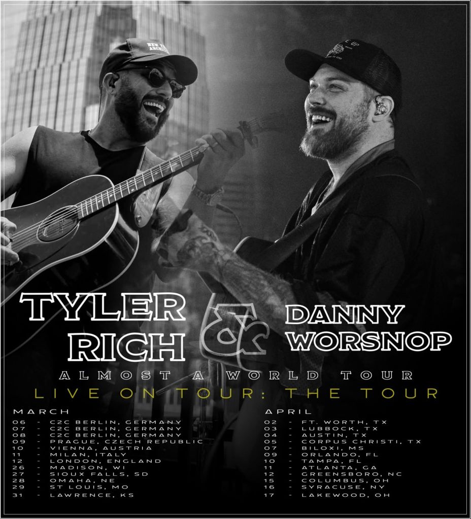 Country singer Tyler Rich is teaming up with Danny Worsnop (of Asking Alexandria fame) for the “Almost a World Tour” tour. This late winter/early spring run kicks off March 6th with three nights in Berlin, Germany. Tickets are on sale now at tylerrich.com!