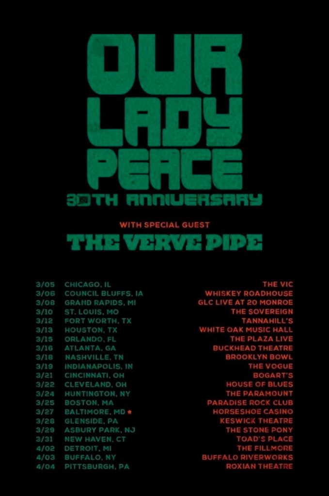 This week, Our Lady Peace is kicking off their 30 year anniversary tour with The Verve Pipe. This 21-date late winter/early spring run begins March 5th in Chicago, Illinois. Tickets and VIP are available at ourladypeace.com!