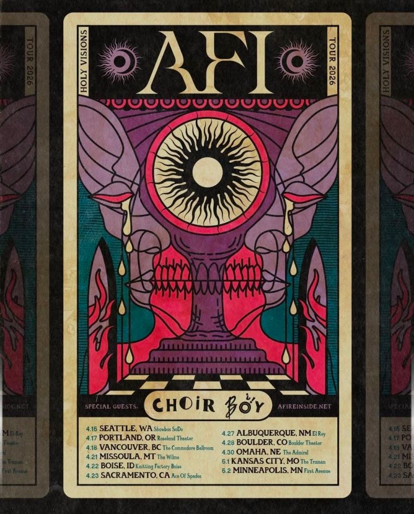 Alt-rock/emo veterans AFI have shared dates for the “Holy Visions Tour.” With special guest Choir Boy, this 12-date trek kicks off April 15th in Seattle.