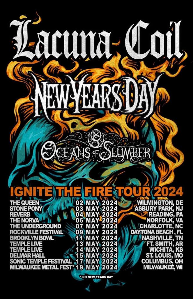 Italian gothic metal band Lacuna Coil has announced some May U.S. dates with special guests New Years Day and Oceans of Slumber. The 12-date run kicks off in Wilmington, Delaware. Tickets and VIP are available at lacunacoil.com!