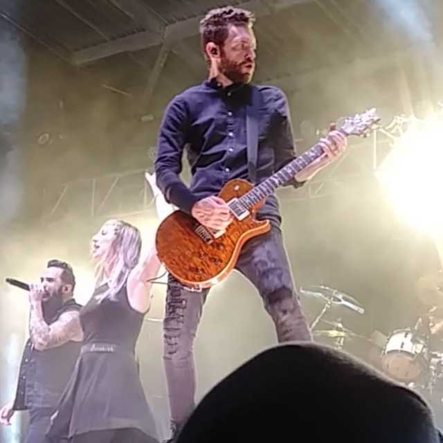 Skillet was next. I had never seen them before and I was suitably impressed. Once on the stage, the members of Skillet were a nonstop ball of energy. Front man John Cooper was quite charismatic, constantly moving and encouraging the audience’s participation. The band did all of their biggest hits: “Hero,” “Monster,” “Awake and Alive,” “Whispers in the Dark,” and “Legendary,” just to name a few. By the time they concluded with “The Resistance,” the crowd was practically vibrating from adrenaline and well and truly primed for Alter Bridge.