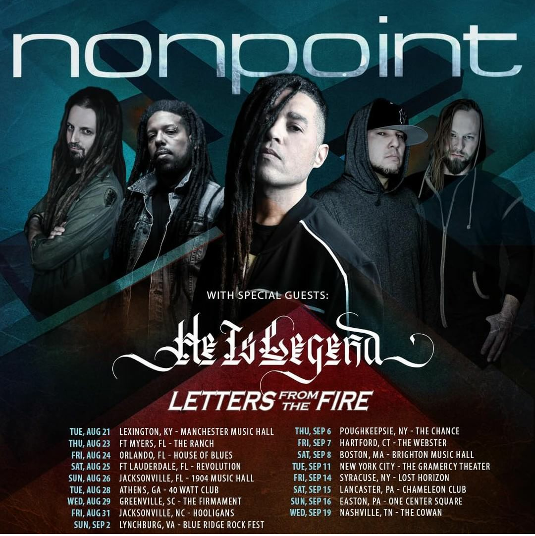 I just saw this announcement on Letters From the Fire’s Instagram, and I’m super stoked! Nonpoint is hitting the road in August with special guests He Is Legend and, of course, Letters From the Fire.