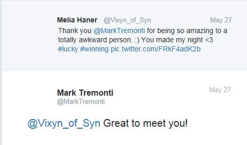 While I was still struggling not to cry, a guy we’d been talking to before the show walked up. His name was Wade and he had tweeted Mark earlier in the week, asking if he would play his PRS at the show–and Mark said yes. He played the guy’s guitar for one song and announced to the crowd that it was Wade’s. (Legit, right?????) So Wade looks at me and asks if I got to meet Mark. I replied no and explained what happened. “Well,” Wade says, “you’d probably have luck if you went to the buses. They’re right around the corner. If Mark sees you out there, he’ll definitely talk to you. He’s a really cool guy.”